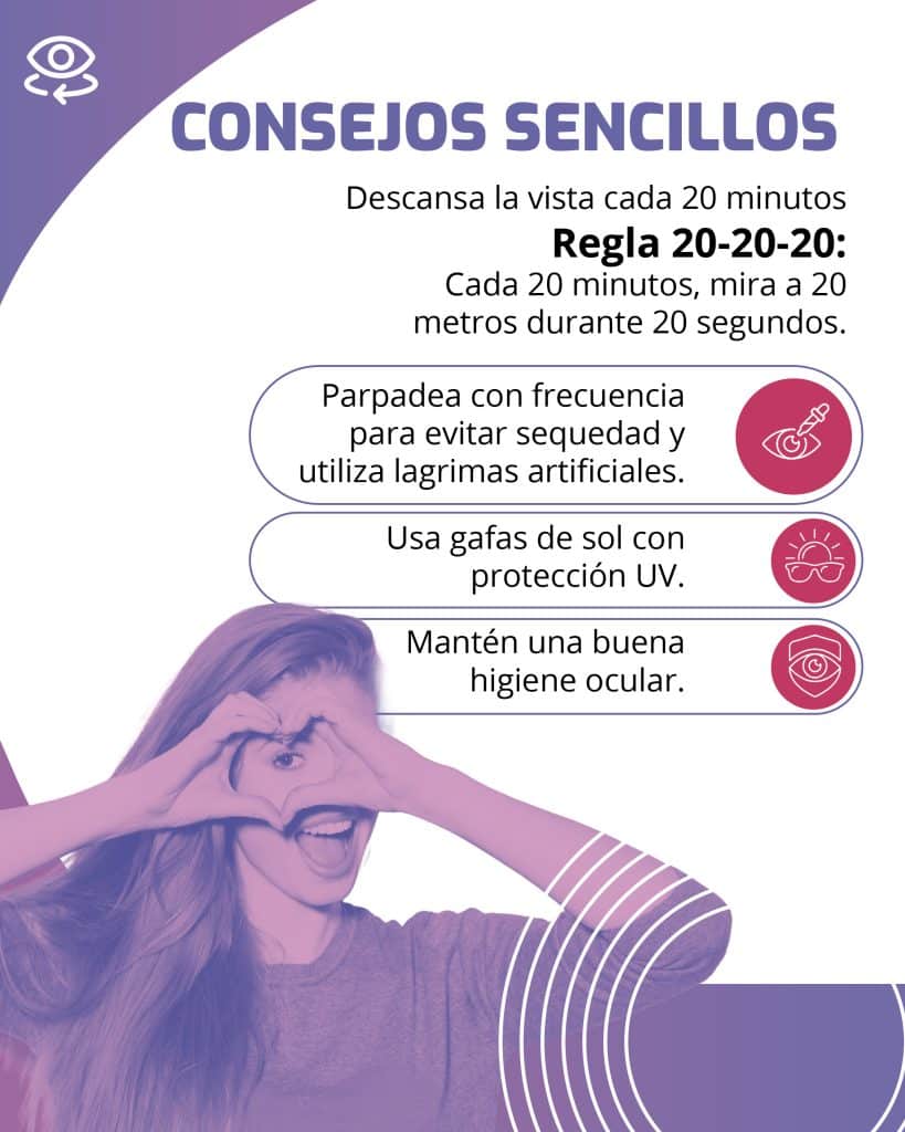 📱 El uso prolongado de pantallas puede causar fatiga visual, sequedad y enrojecimiento.